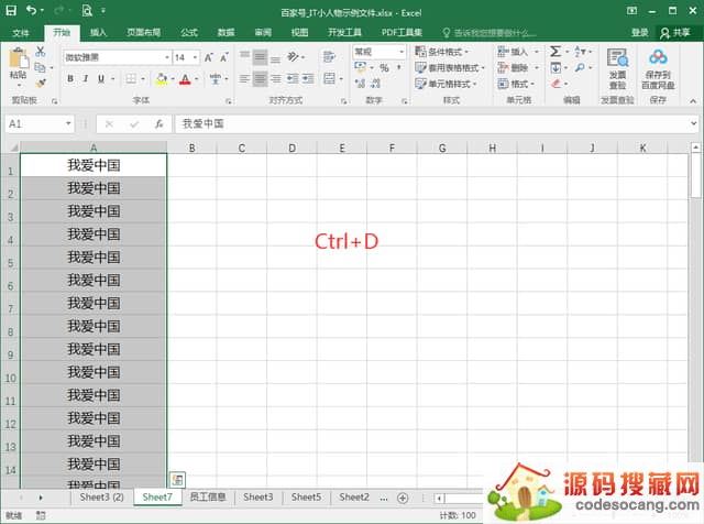 4、然后按组合键【Ctrl+D】,100行相同的内容就自动输入好了,你可以试试哦。