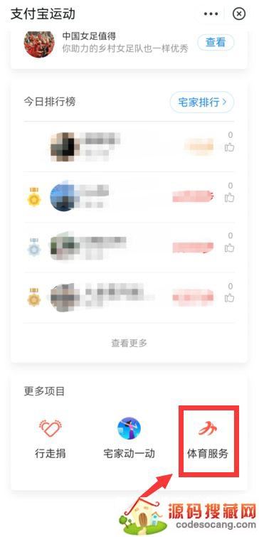 将支付宝运动页面拉到底部,点击“体育服务”。