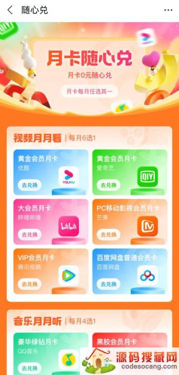 随后便会进入“随心兑”页面,这里展示的所有月卡都可以自由兑换。