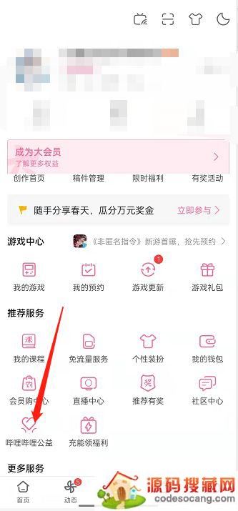 在个人中心中选择【哔哩哔哩公益】。
