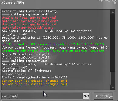 游戏中按 ~ 开启控制台,输入 exec cheats 成功后会看到提示:Portal2 simple_cheats by wrss@ali213