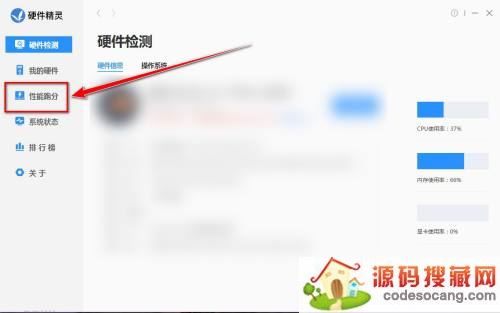 第二步:在硬件精灵窗口中,点击左侧工具栏中的“性能跑分”。