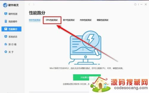 第三步:在性能跑分界面中,点击“cpu性能测试”。