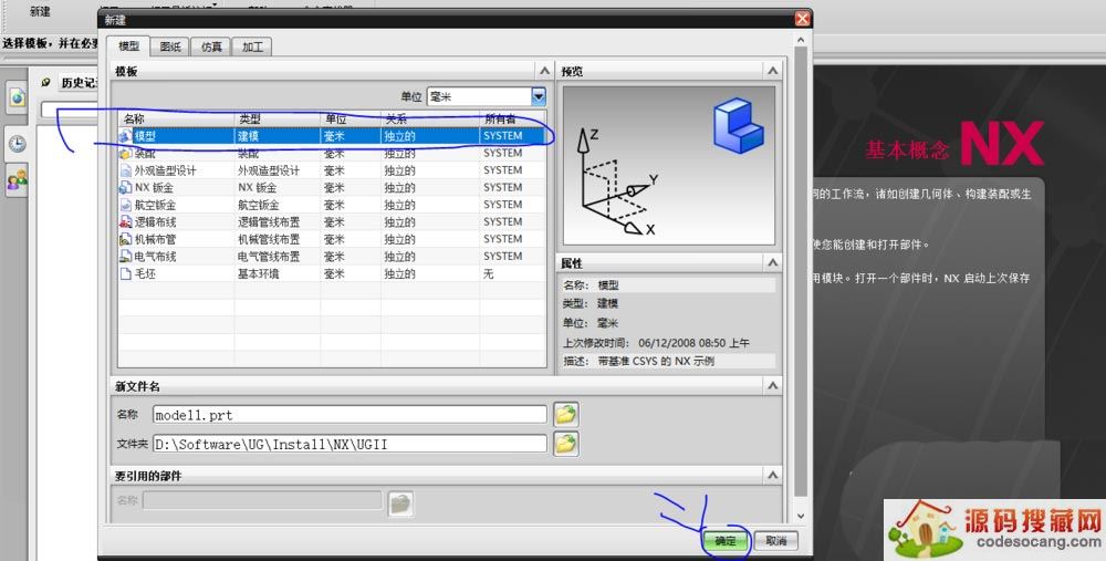 新建一个模型,单击确定。