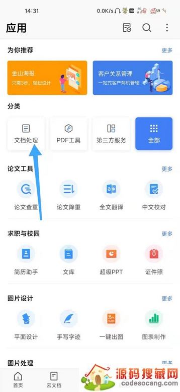 第四步:最后在文档处理中找到WPS云进销存即可操作。