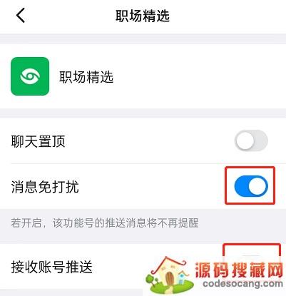 3、将消息免打扰打开,接受账号推送关闭即可。
