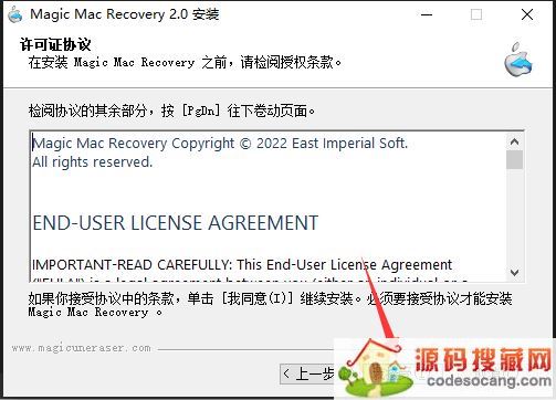 1.在源码搜藏网下载解压后,大家将获得magic_mac_recovery.exe的crack等文件,双击magic_mac_recovery.exe开始安装软件,如图