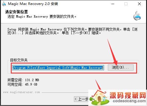 4.点击浏览,更换软件安装目录,默认目录:C:\Program Files\East Imperial Soft\Magic Mac Recovery;如图