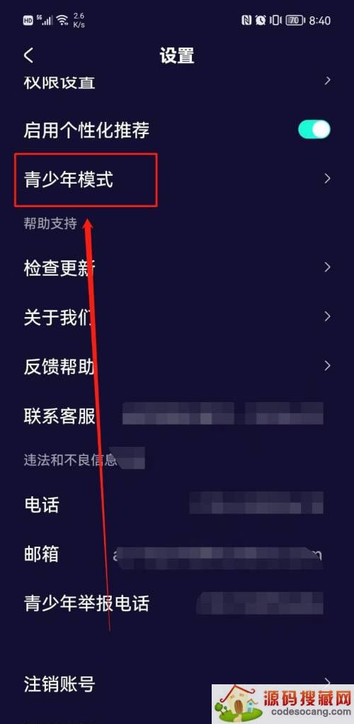 第三步:点击【青少年模式】,详见下图所示。