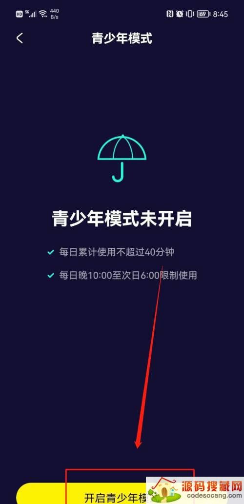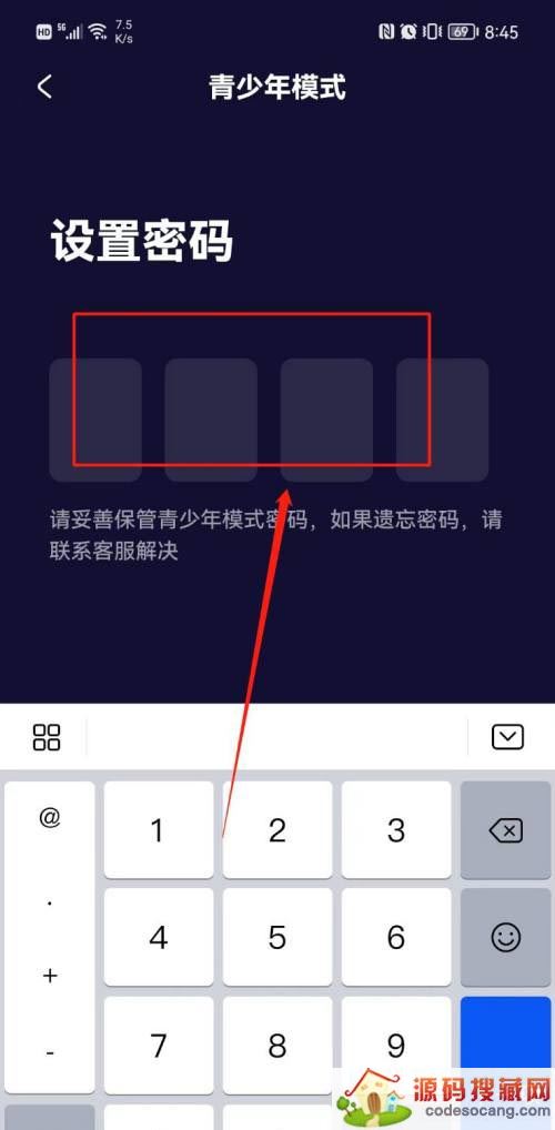 第四步:点击【开启青少年模式】,在弹出的页面设置密码即可,详见下图所示。