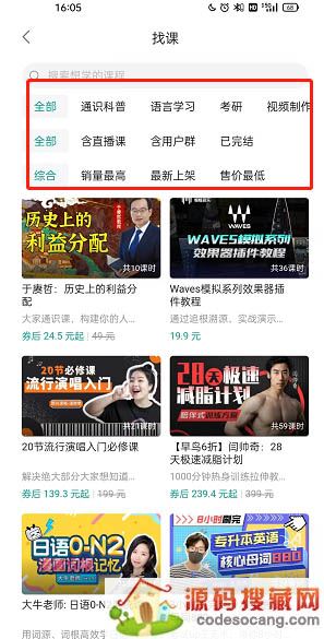 4、然后你就可以根据分类快速找到自己需要的课程了。