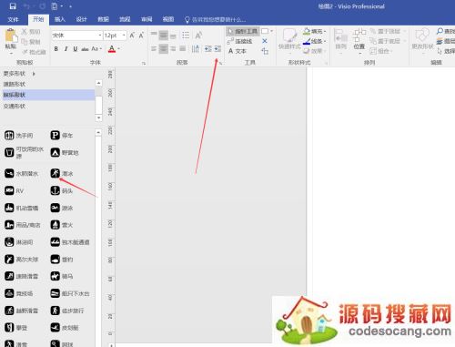 第六步:接下来我们就可以利用左边栏的“形状图”以及工具栏中的工具进行绘制方向图了。如下图: