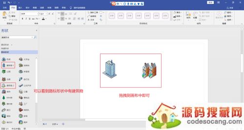 第六步:可以看到路标形状中有建筑物, 拖拽到画布中即可。