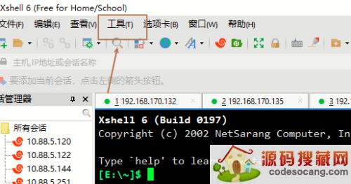第二步:打开xshell后,点击上方的工具按钮,如图:
