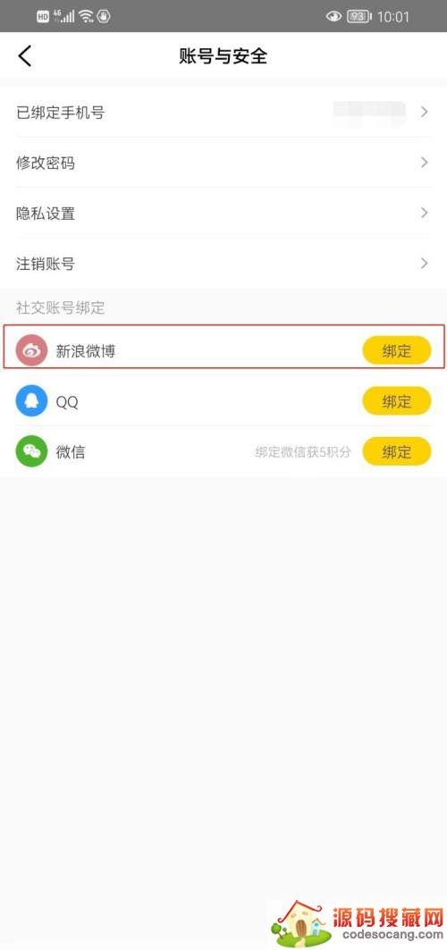 最后点击【新浪微博】后侧的【绑定】即可完成操作