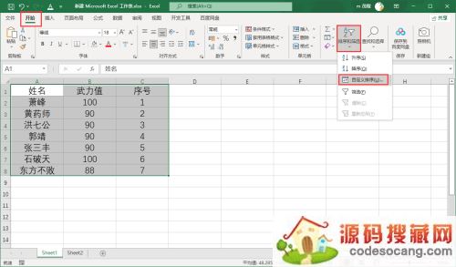 选中全部数据,在“开始”选项卡下,点击“排序和筛选”-“自定义排序”。