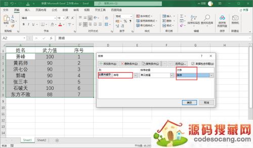 主要关键字选中“序号”,次序选中“倒序”点击“确定”。