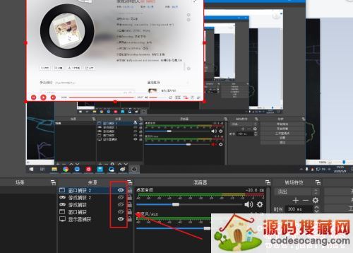 4、添加了多个窗口之后,可点击来源处后面的眼睛图标进行开启或关闭显示。