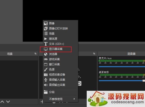 2、然后在打开的菜单中选择“显示器采集”,把显示器加入进来。