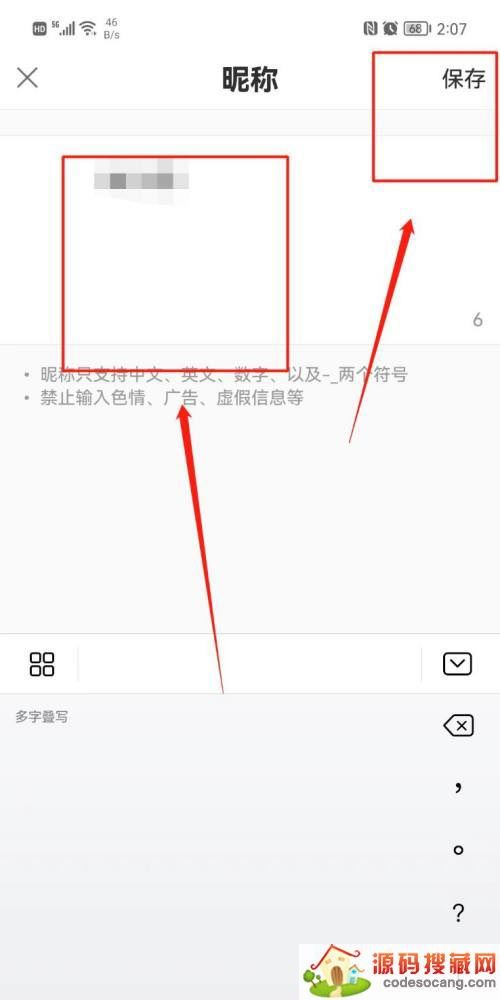 第三步:点击【昵称】,在弹出页面输入昵称,最后点击【保存】即可,详见下图所示。