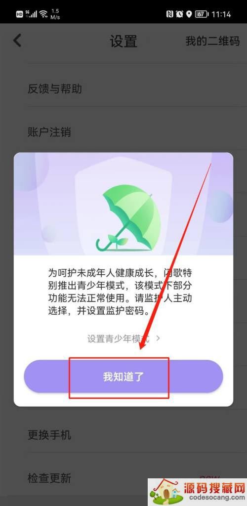 第四步:在弹出的页面点击【我知道了】即可开启青少年模式,详见下图所示。