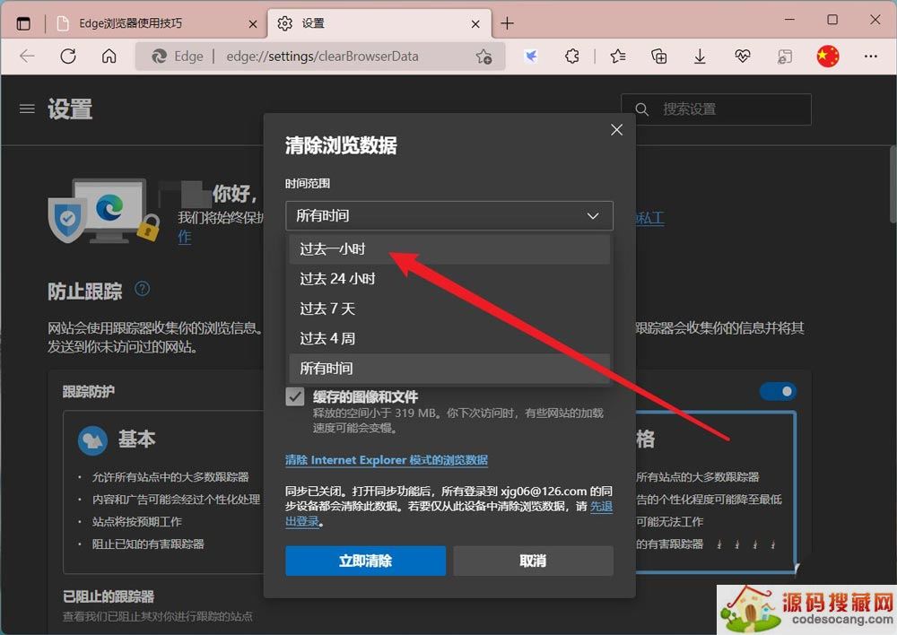 以上就是Edge浏览器清除过去一小时内的历史记录的技巧,希望大家喜欢,请继续关注源码搜藏网。