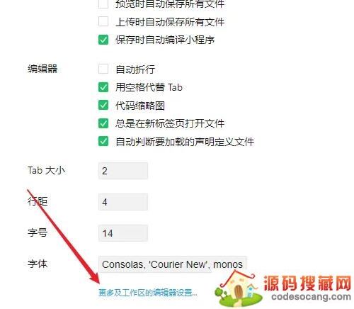 接着,点击更多及工作区的编辑器设置