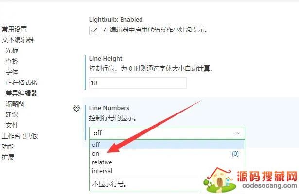 最后,找到控制行号的显示,下拉列表选择on