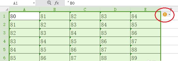 2、首先选中表格中的所有数据,这时可以看到有一个黄色的感叹号。