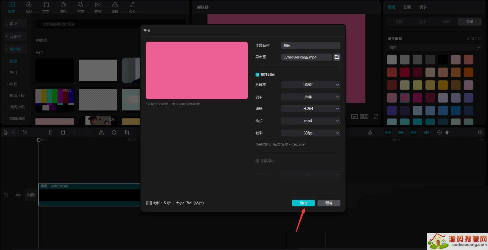 点击背景按钮,背景填充选择颜色,然后选择粉色,见下图。