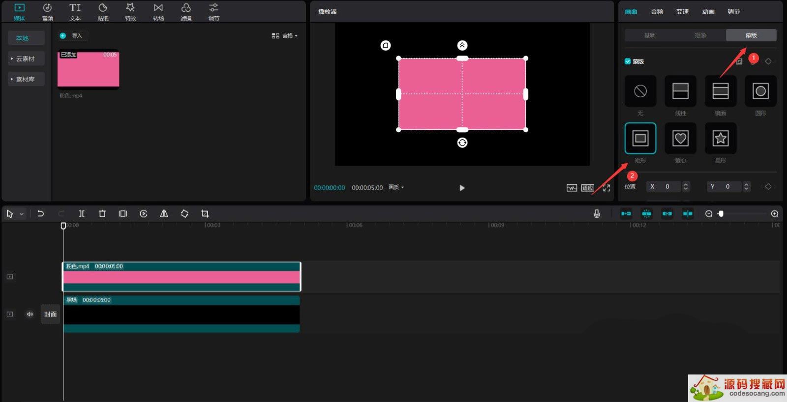 点击蒙版按钮,选择矩形蒙版,见下图。