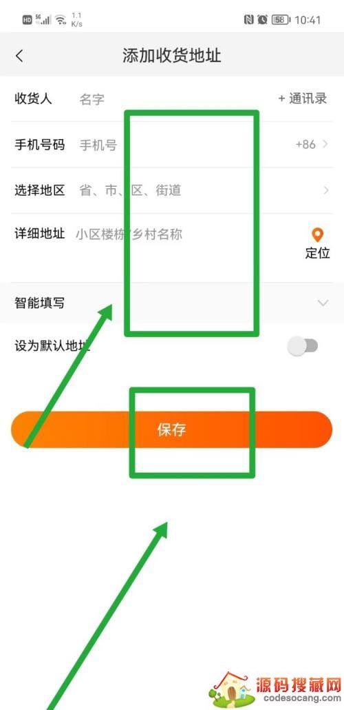 第五步:收入详细收货地址,最后点击【保存】即可,详见下图所示。