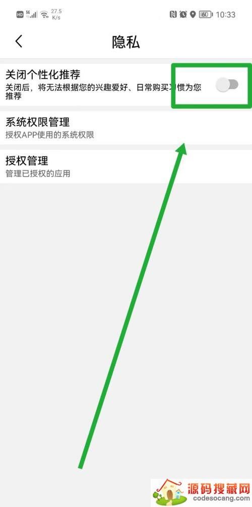 第四步:点击【关闭个性化推荐】后的圆形按钮,待显示绿色即可关闭个性化推荐,详见下图所示。