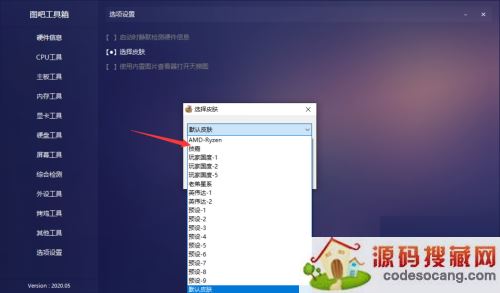 第四步:最后,在这个下拉菜单里就可以设置皮肤。
