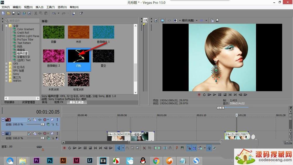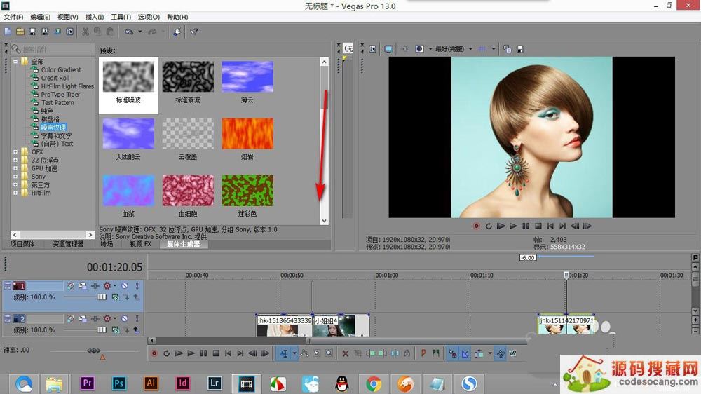 1.首先我们打开vegas,点击媒体发生器,找到上方的噪声纹理选项。