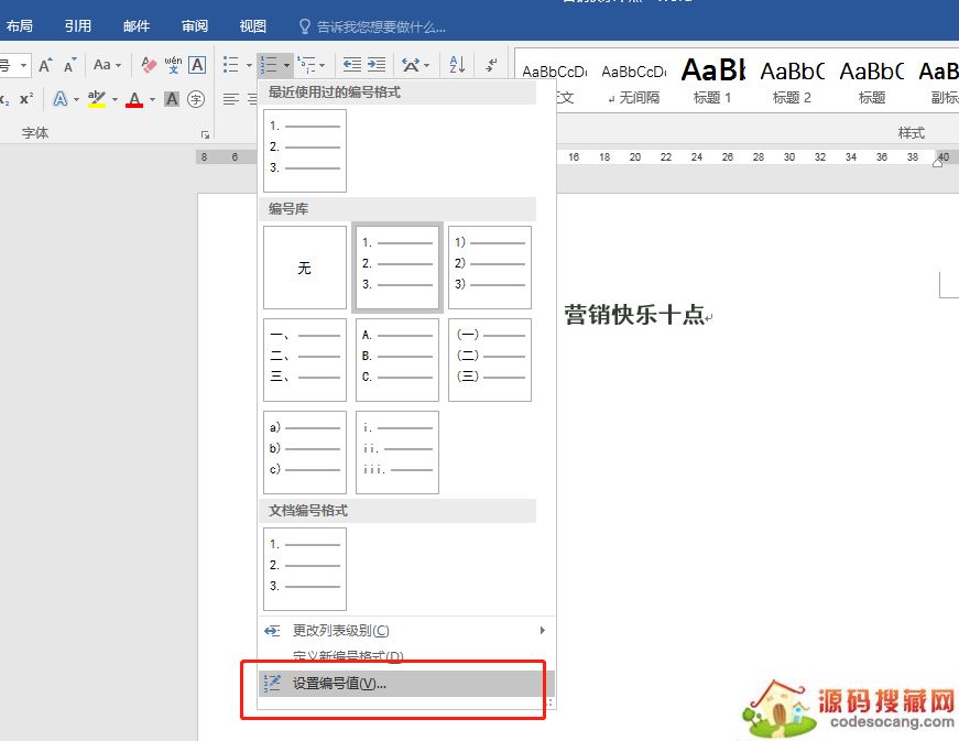 单击展开“编号”命令,在展开的命令选项中选择“设置编号值”。