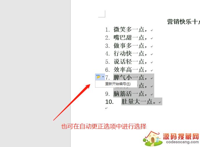这里再介绍一个其他快捷的方法,当设置了编号之后,在编号旁边有“自动更正选项”设置,也可以通过自动更正选项进行选择设置。