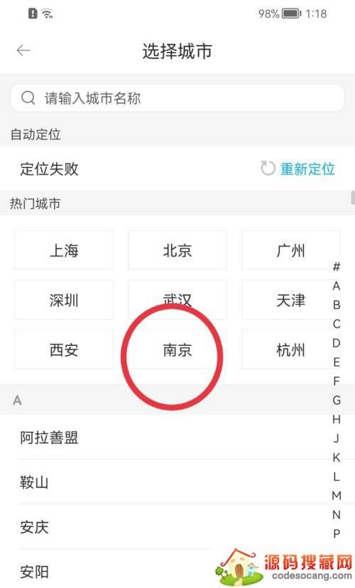 进入选择城市页面,点击选择需要的城市,即可成功更换城市。