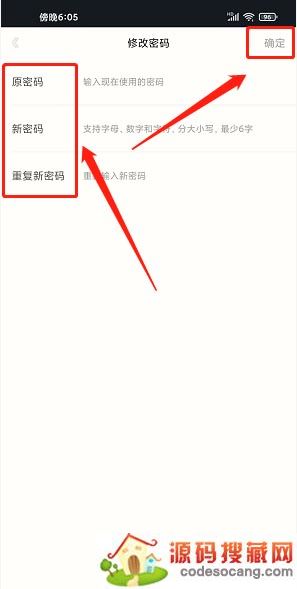 进入修改密码界面,输入原密码、新密码、重复新密码,点击【确定】。
