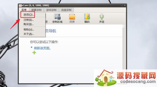1、首先打开电脑oCam后,选择点击菜单按钮