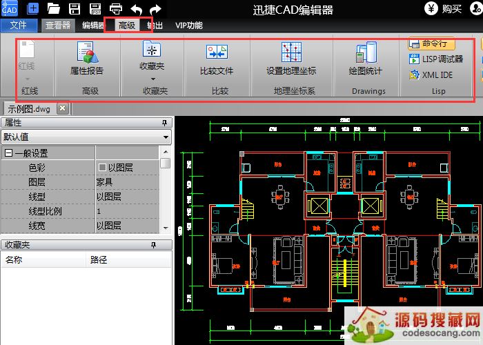 将CAD文件打开后,点击“高级”功能选项,然后能看到高级功能下方有许多的功能可以进行操作。