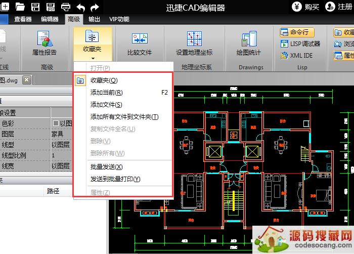 点击“收藏夹”按钮,可以将CAD文件添加到文件夹当中,或者将CAD进行批量打印。