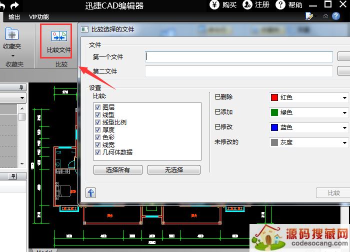 点击“比较文件”按钮,就可以对对几个比较相似的CAD文件进行比较操作。