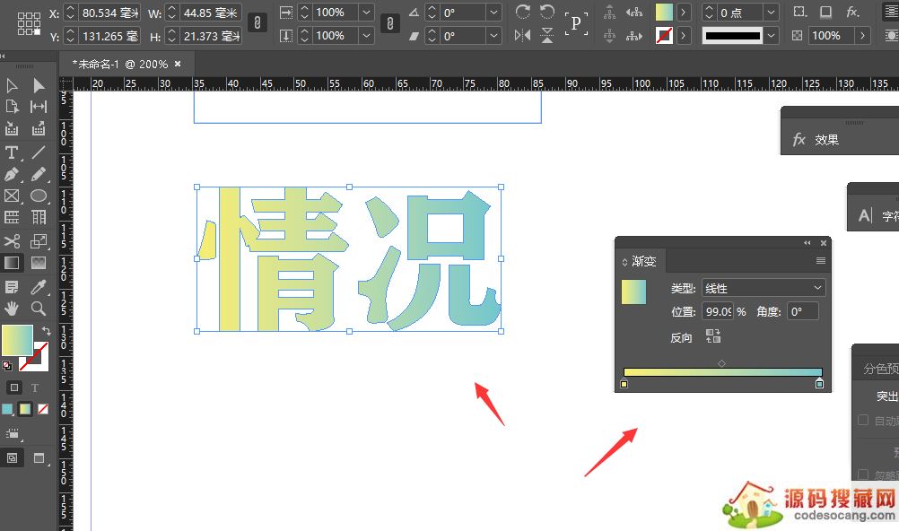点击渐变面板下方颜色图标后,就可以将渐变颜色添加到文字中,得到如图的渐变文字效果
