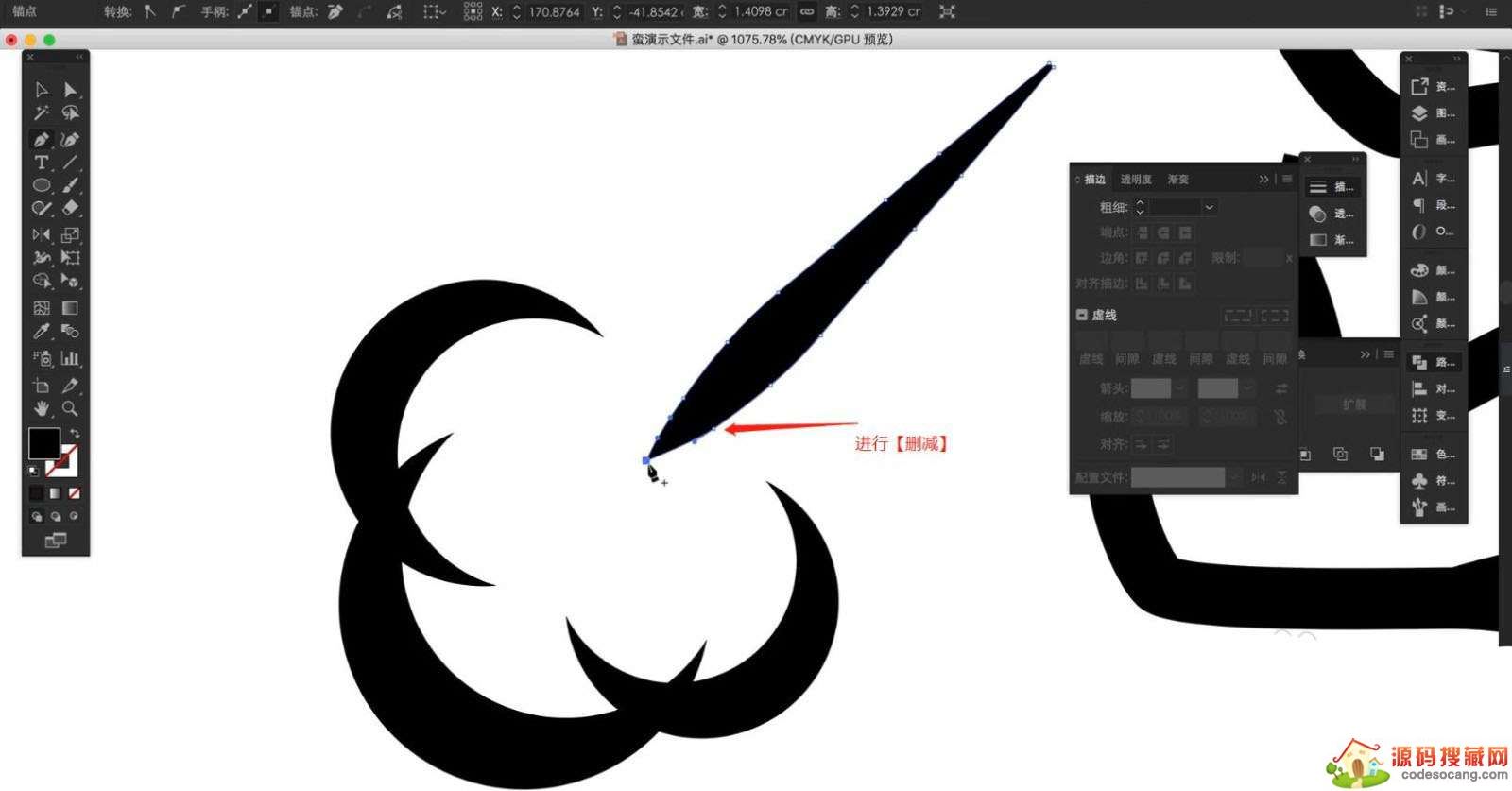 扩展完成后,再次选择形状效果,使用【钢笔】工具对形状进行【删减】的操作。
