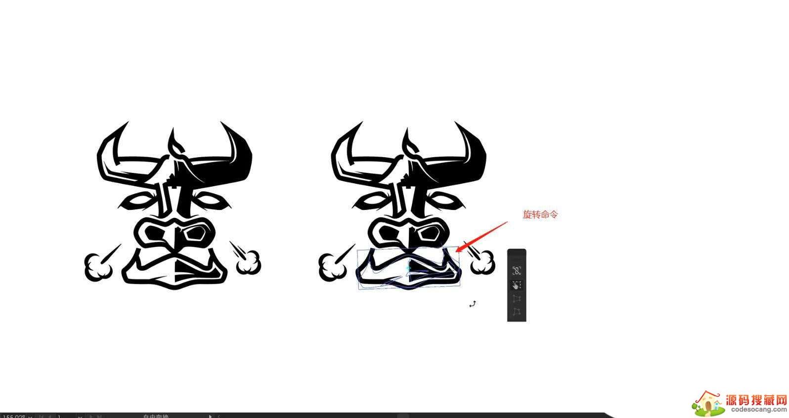 选择制作好的图形效果,选择【底部】位置的图形,使用【旋转】命令调整图形的形状。