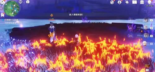 4、我用的是北斗班尼特的超载,击杀冰胖后去杀冰术士和他的冰苍蝇,苍蝇也会打机关,但是水胖基本只奶人,不会威胁到机关的血量,所以先杀术士最后再杀了水胖,这样第一波怪就结束了。