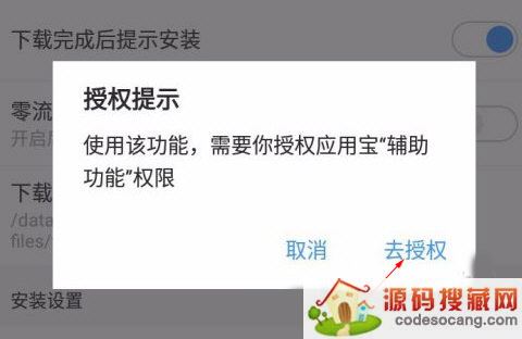 3、这时候打开省心装需要对应用宝进行授权处理,点击“去授权”