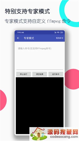 6、专家模式:用户自定义输入FFmpeg命令,极客必备功能。