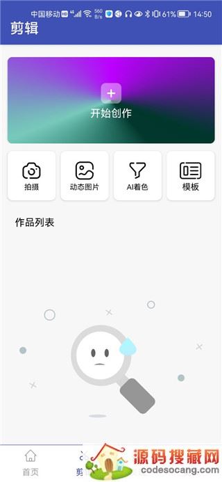 3、点击剪辑,这里用户可以开始创造,也可以进行拍摄等;